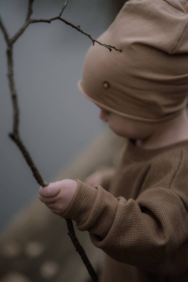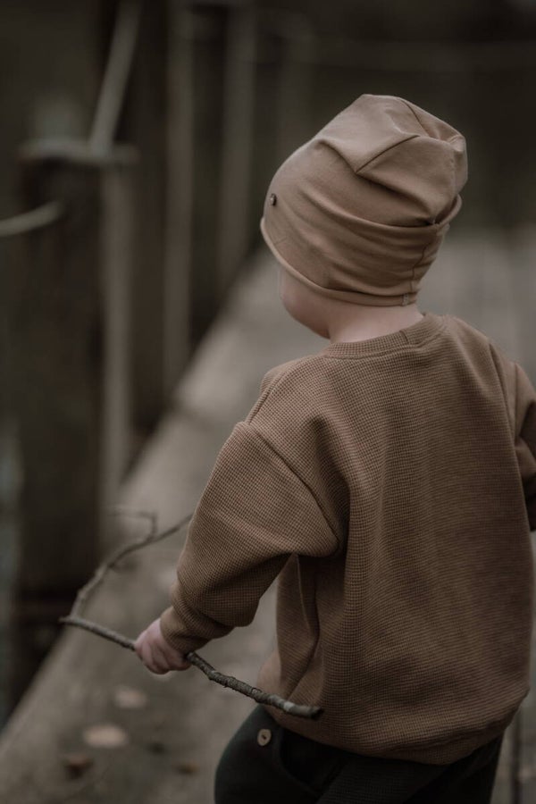 Oversize Sweater aus weichem Wafflestoff in der Farbe Cacao.