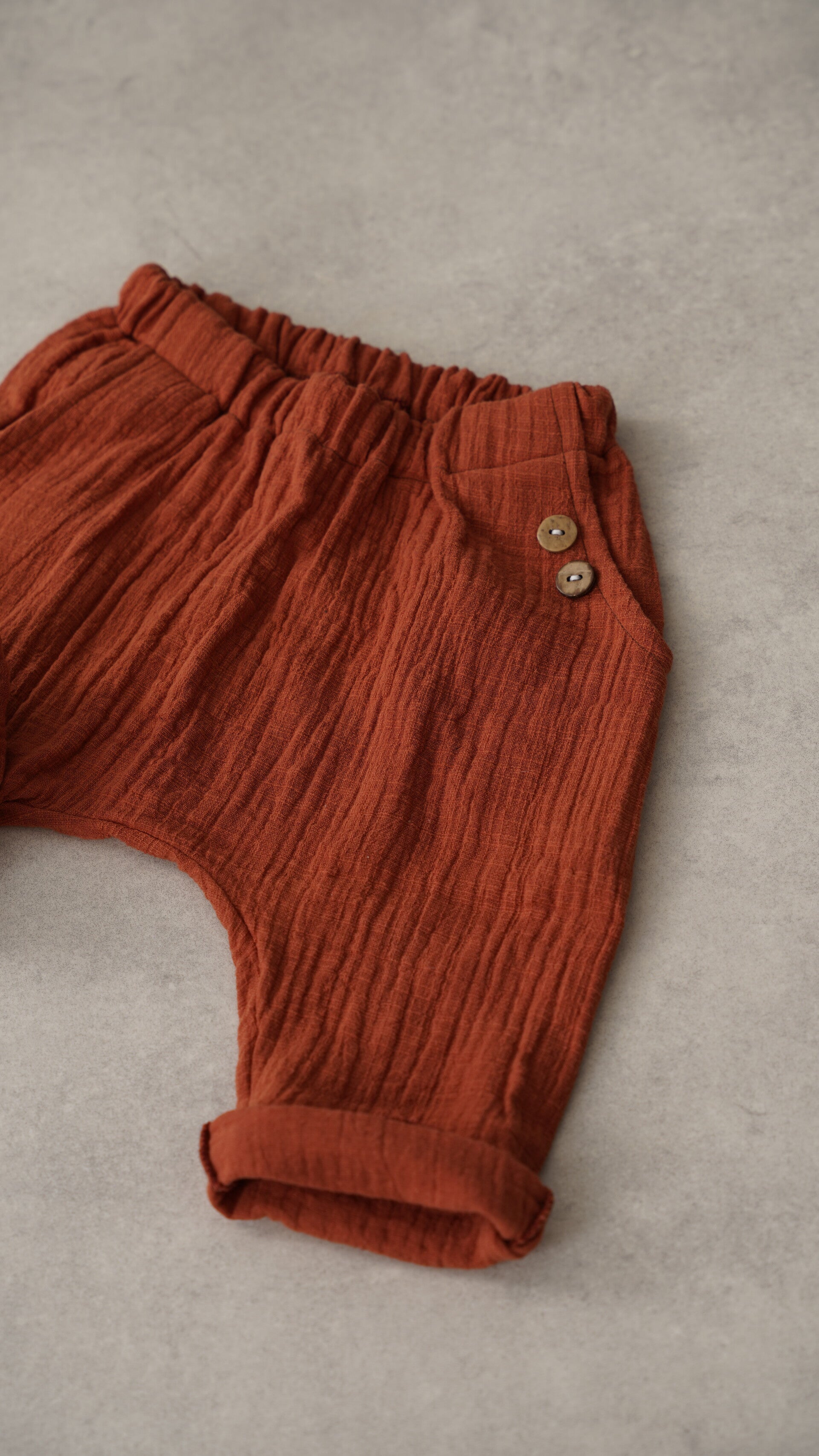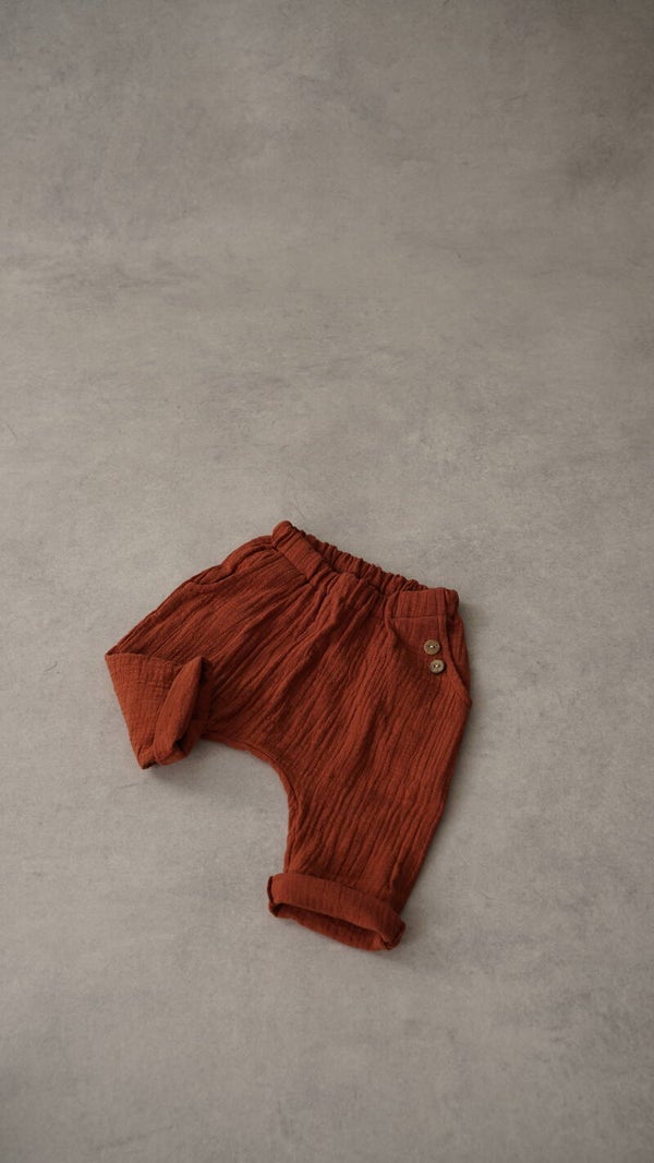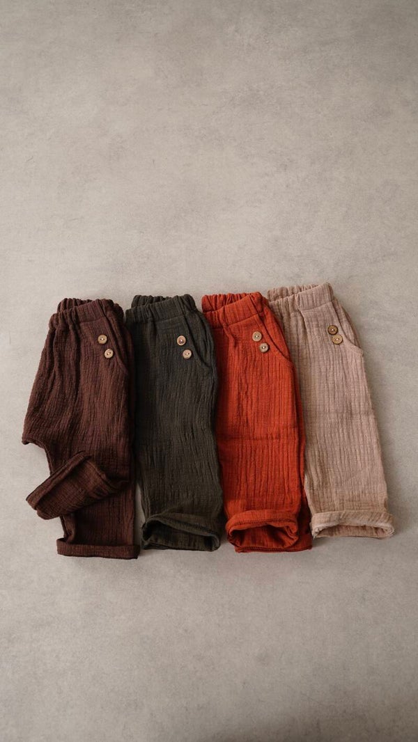 • Luftige weiche Musselinhose, perfekter Begleiter im Sommer. Sitzt lässig und locker, lässt sich zu jedem Oberteil super kombinieren.