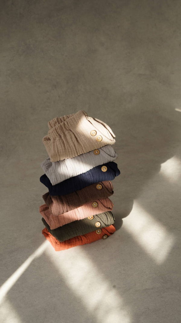 • Luftige weiche Musselinhose, perfekter Begleiter im Sommer. Sitzt lässig und locker, lässt sich zu jedem Oberteil super kombinieren.