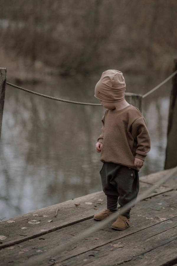 • Knickerbocker aus dem schönen Waffelstoff mit Bündchen. Die Hose fällt großzügig aus und wächst aufgrund von umgeschlagenen Bündchen, bis zu 2-3 Größen mit. Bitte unbedingt aktuelle Größe des Kindes wählen.