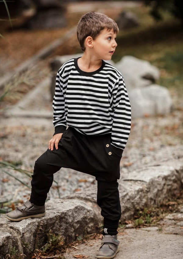 • Knickerbocker aus dem schönen Sweatstoff mit Bündchen. Die Hose fällt großzügig aus und wächst aufgrund von umgeschlagenen Bündchen, bis zu 2-3 Größen mit. Bitte unbedingt aktuelle Größe des Kindes wählen.