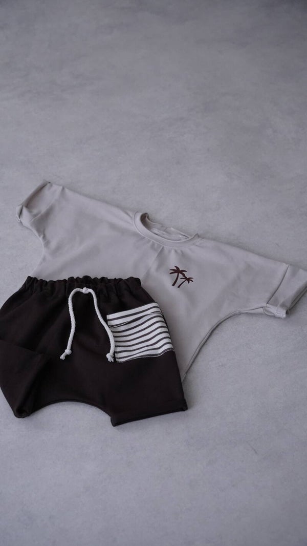 Haremshort Braun mit gestreiften Tasche
