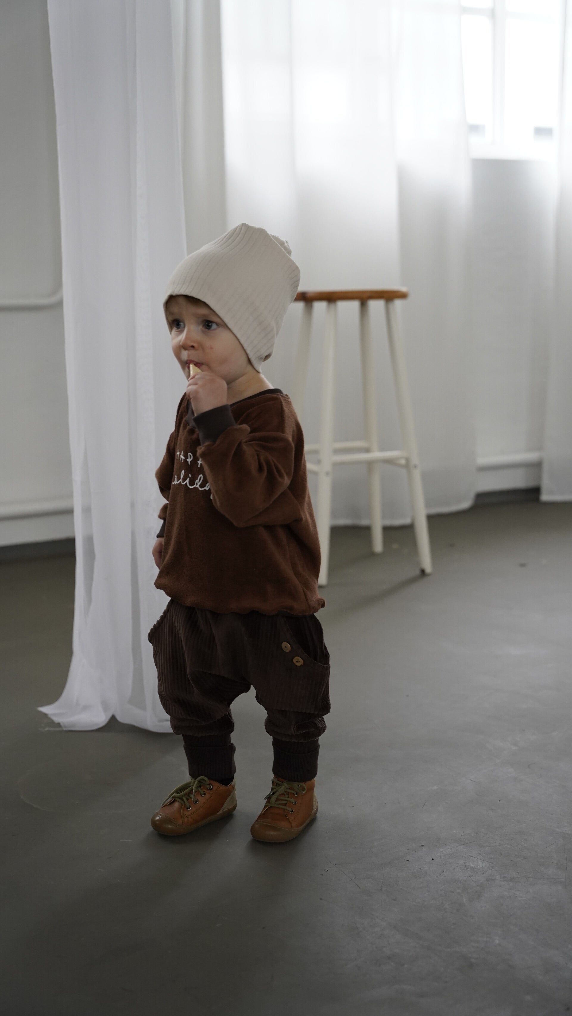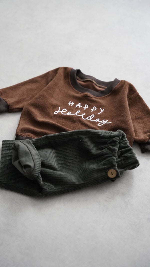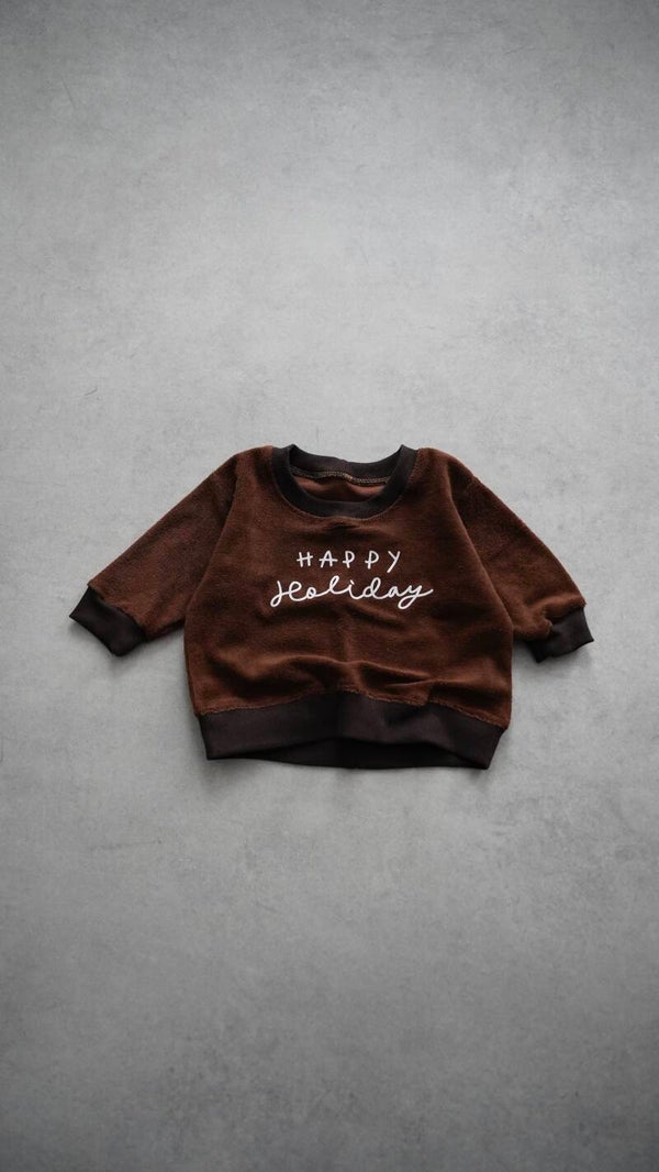 Oversize Sweater aus weichem Frottee Stoff in der Farbe Braun.