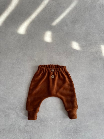 • Lässige Haremslim Hose aus dem weichem und elastischen Cordstoff in der Farbe Rost.