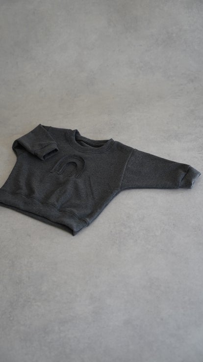 Oversize Sweater aus weichem Wafflestoff in der Farbe Graphit mit Smile.